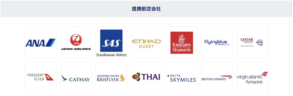 そして、個人的な推しポイントがマイルへの交換です。以下の航空会社のマイルへ交換できます。