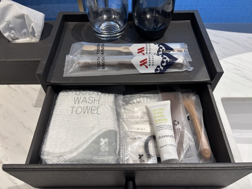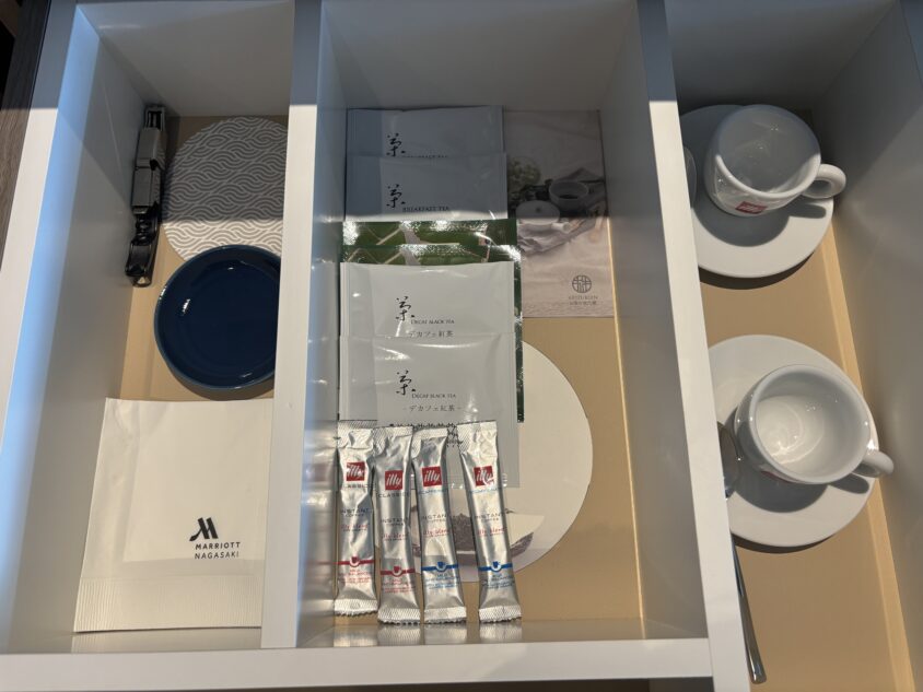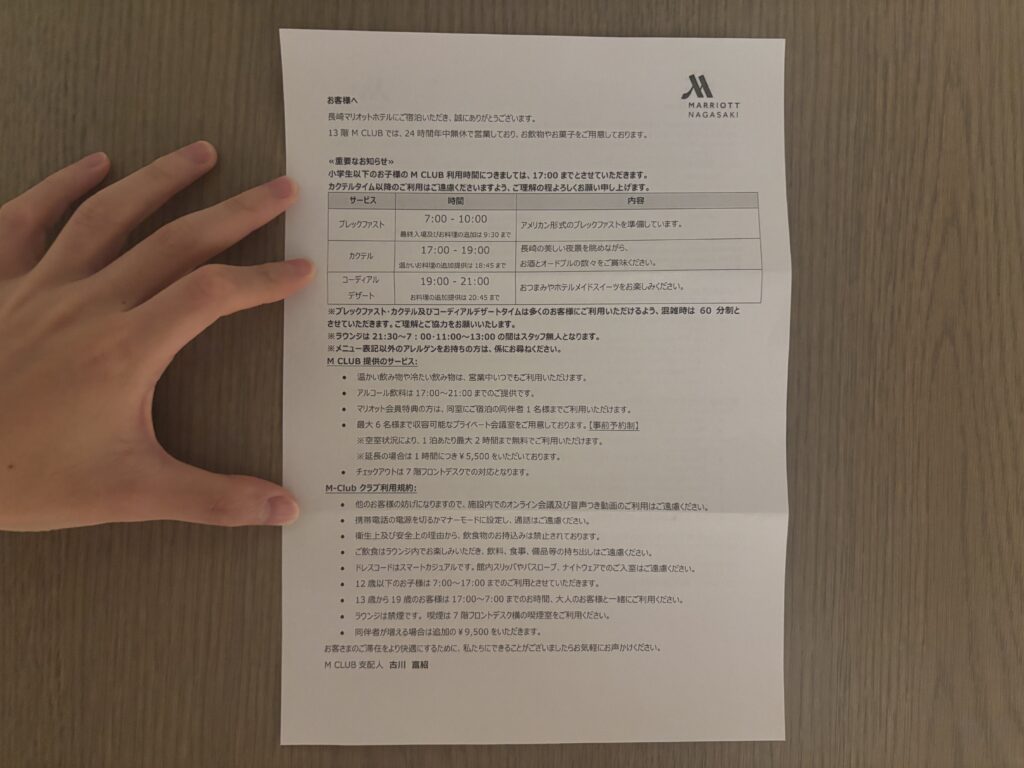 長崎マリオットホテルでは、マリオットボンヴォイのエリート会員に手厚い特典が用意されています。今回私たちはチタンエリートとして宿泊しました。