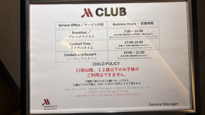 長崎マリオットホテルには、正式名称「M CLUB」というラウンジがあります。