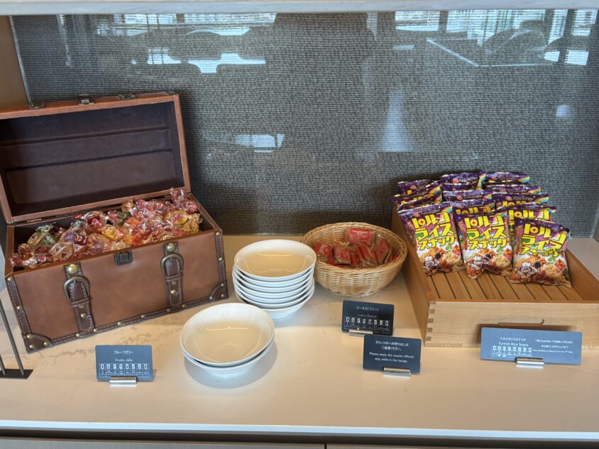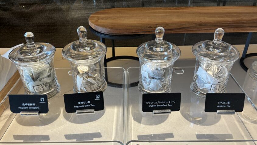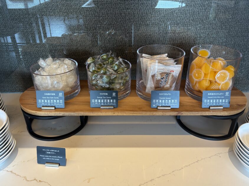 ラウンジでは終日、コーヒー・紅茶・ソフトドリンク、そして長崎のご当地お菓子が提供されています。
