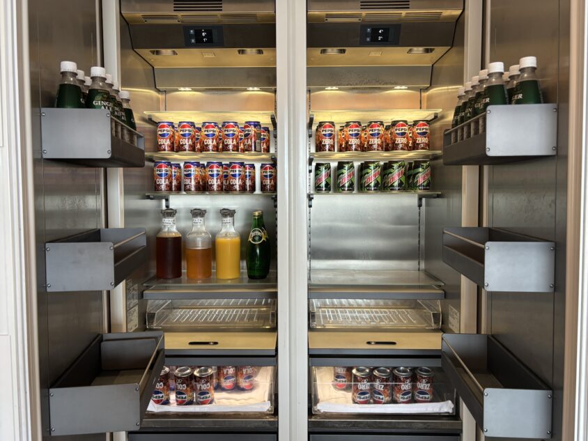 本格的なコーヒーマシンやコーラなどのソフトドリンクが並びます。