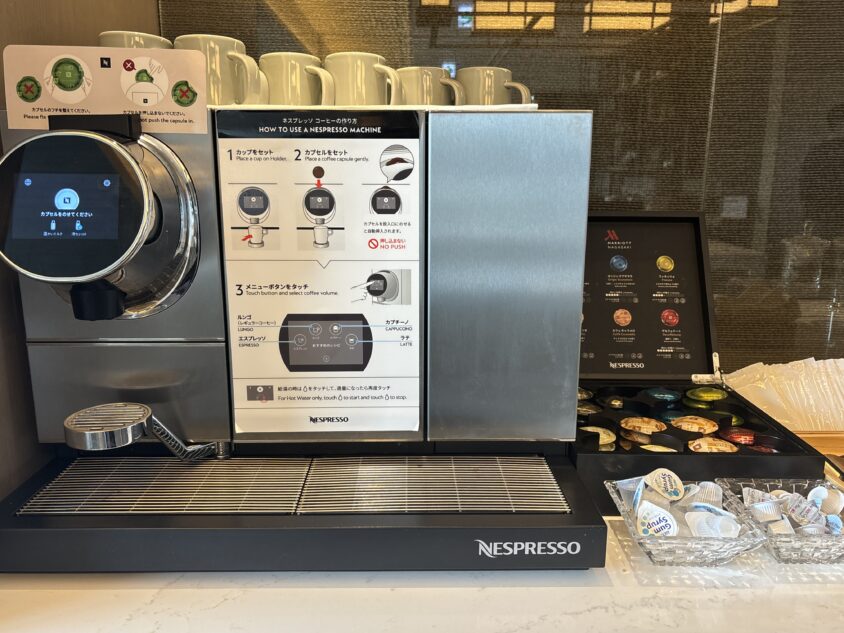 国内マリオットでは初めての24時間営業で、プラチナ・チタン・アンバサダーエリート会員とラウンジアクセス付きの客室の方のみ利用可能です。