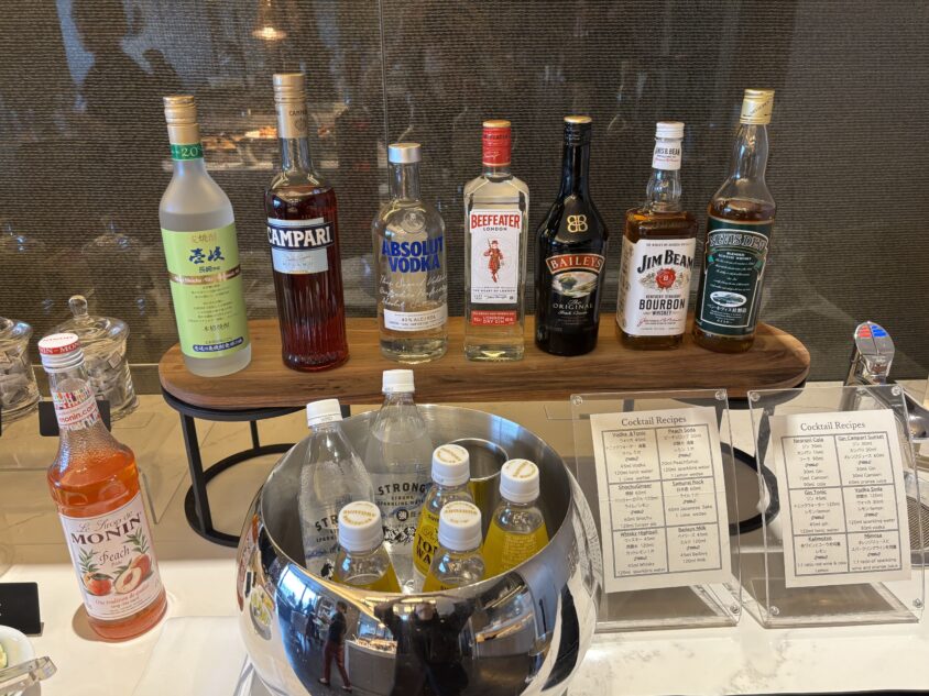 そして、アルコールは生ビール、ワイン、ウイスキー、カクテルなどをセルフバーで楽しめます。
