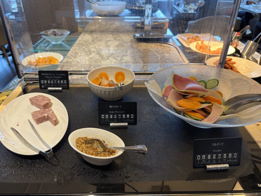 ラウンジの真骨頂とも言えるカクテルタイム。17時になると、ホットミールやコールドフードがずらりと並びます。