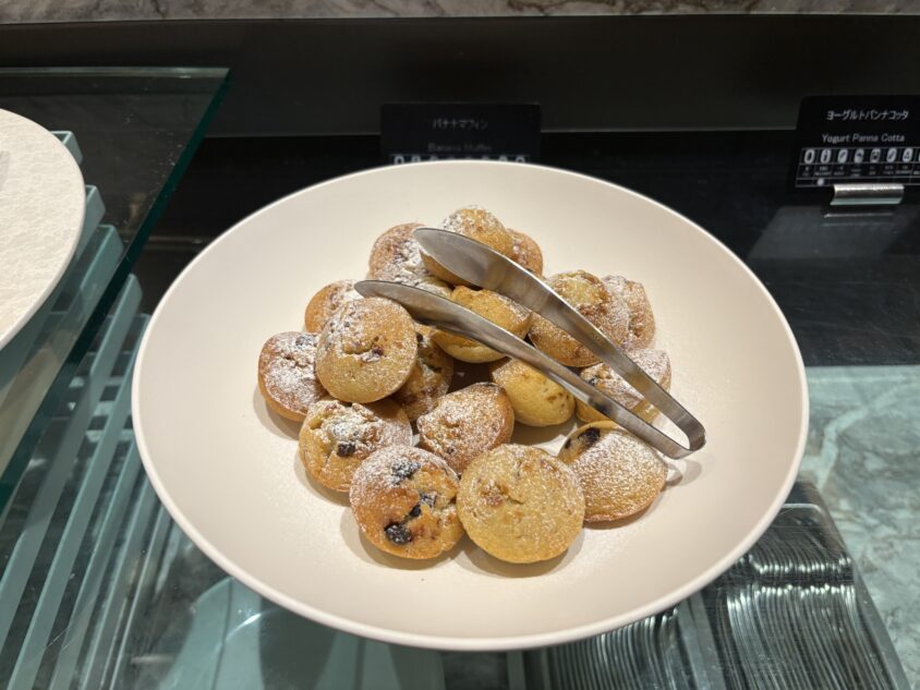 一口サイズのバナナマフィンは、しっとりした生地にバナナの優しい甘みが凝縮されパクパクいけちゃう一品でしたね。