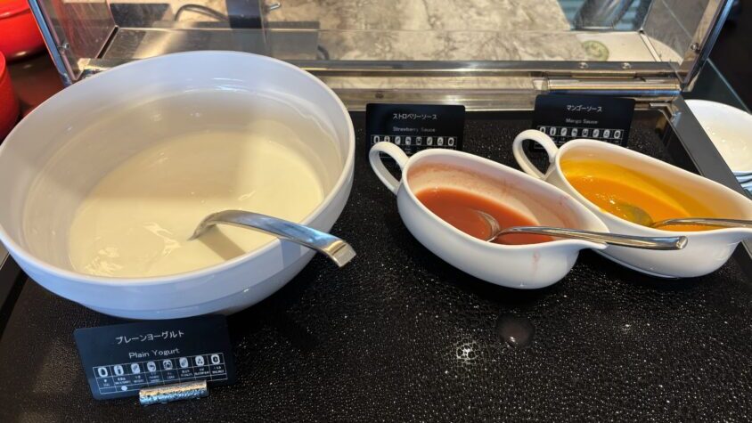 ヨーグルトはプレーンにいちごとマンゴーソース。