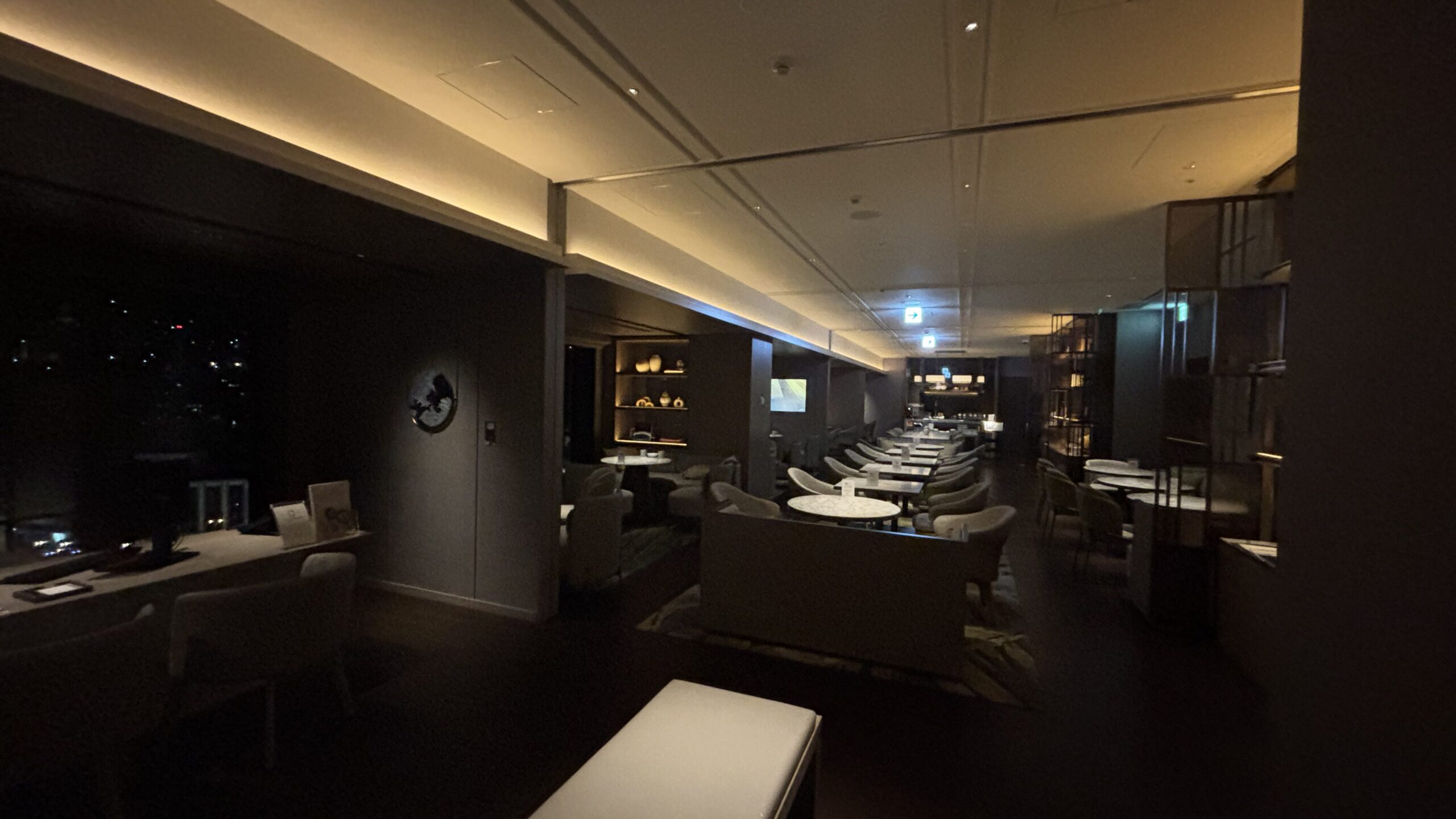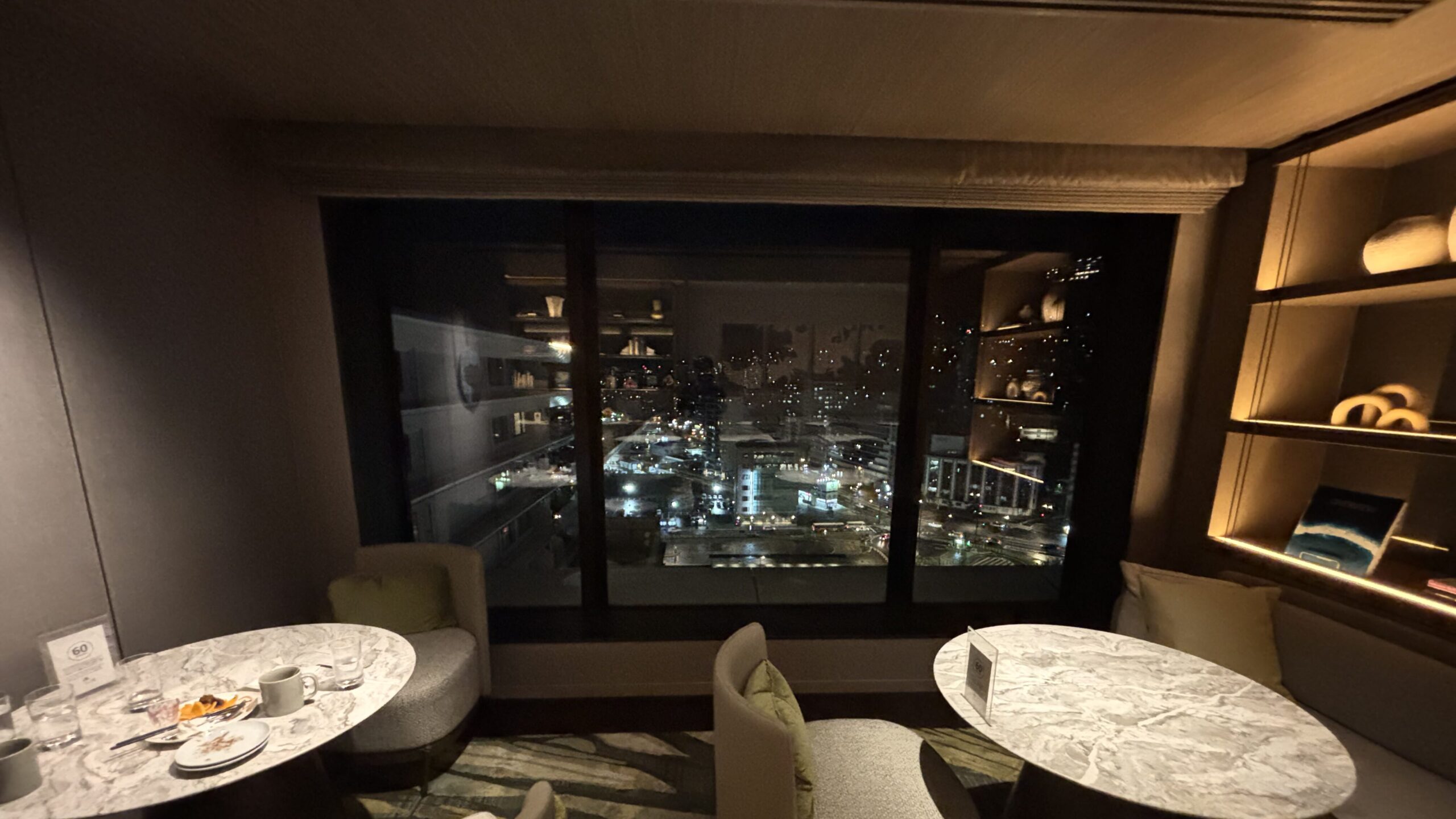 13階のMクラブラウンジからの俯瞰ビューとは異なり、7階からは街の灯りがより近く感じられます。