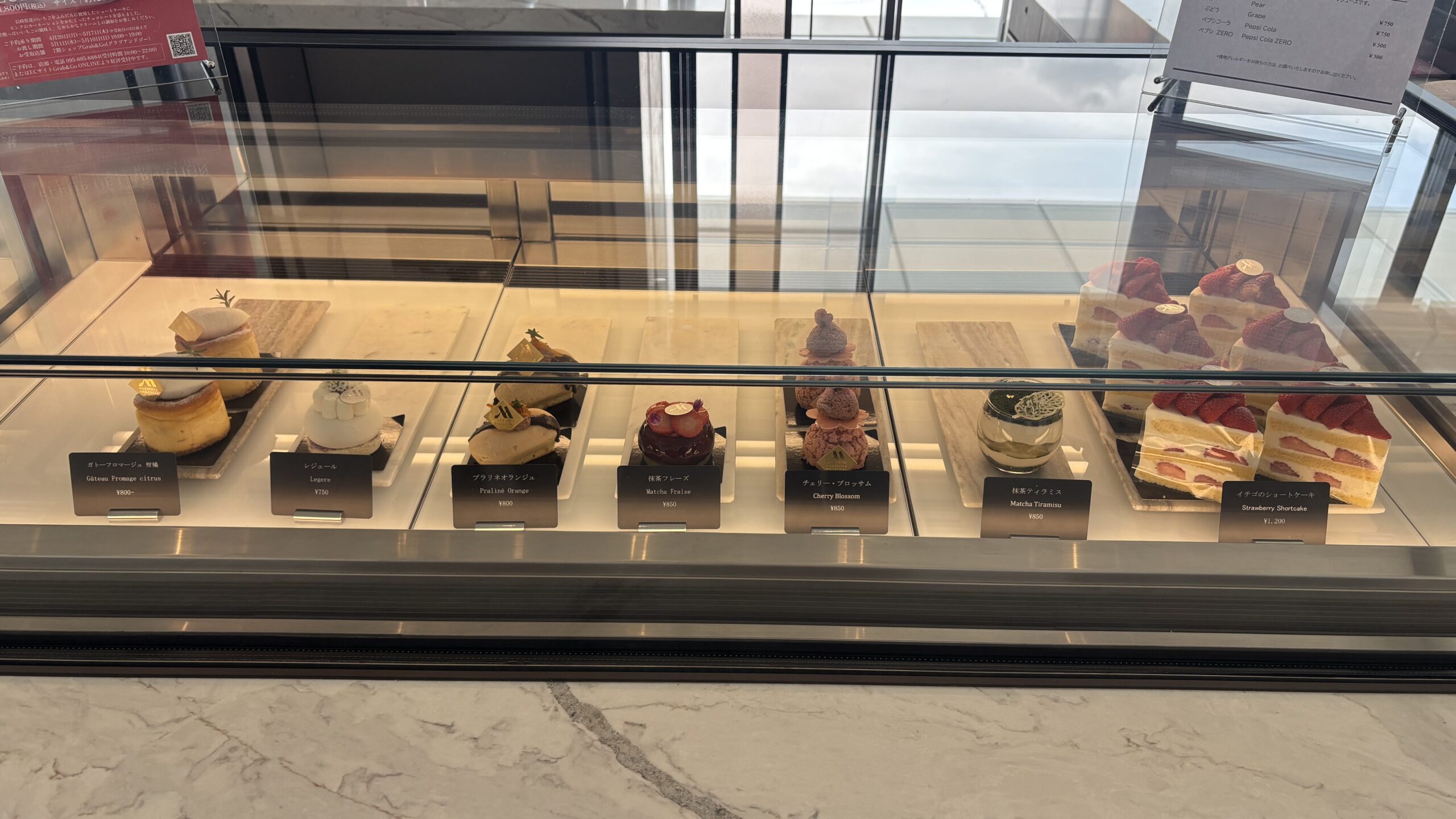 ショーケースに並べられたケーキはもはや芸術です。