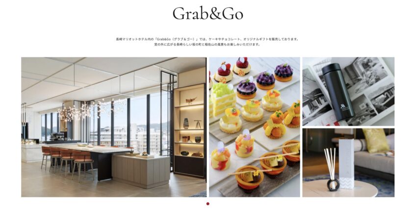 Grab&Goでは長崎マリオットホテルのオリジナルグッズやケーキなどのスイーツが販売されています。