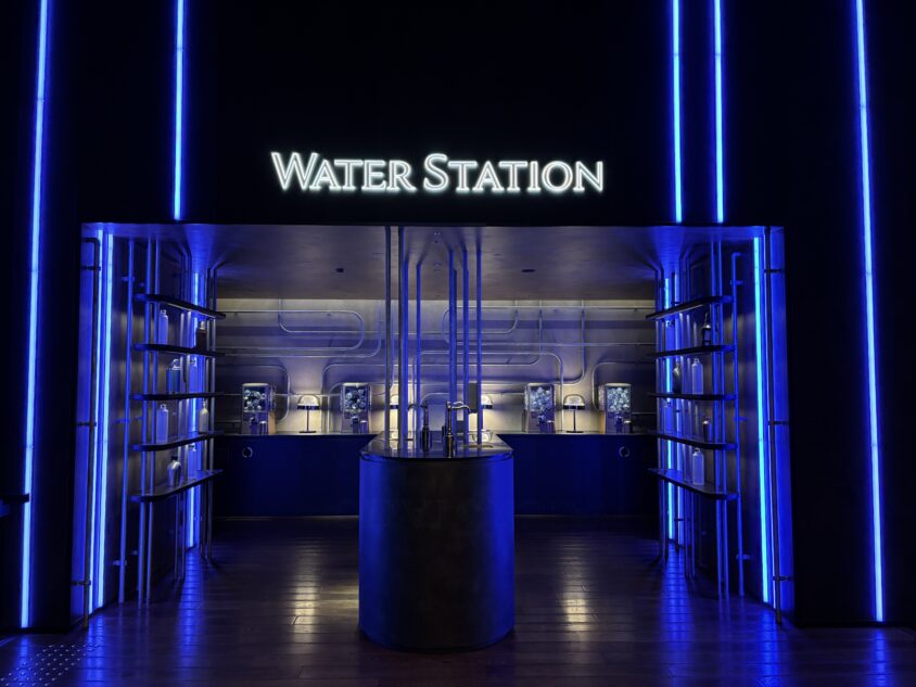 一際目立つウォーターステーション。ここは、駅の待合室や駅前広場のような空間で旅人たちが喉を潤すというコンセプトがあります。