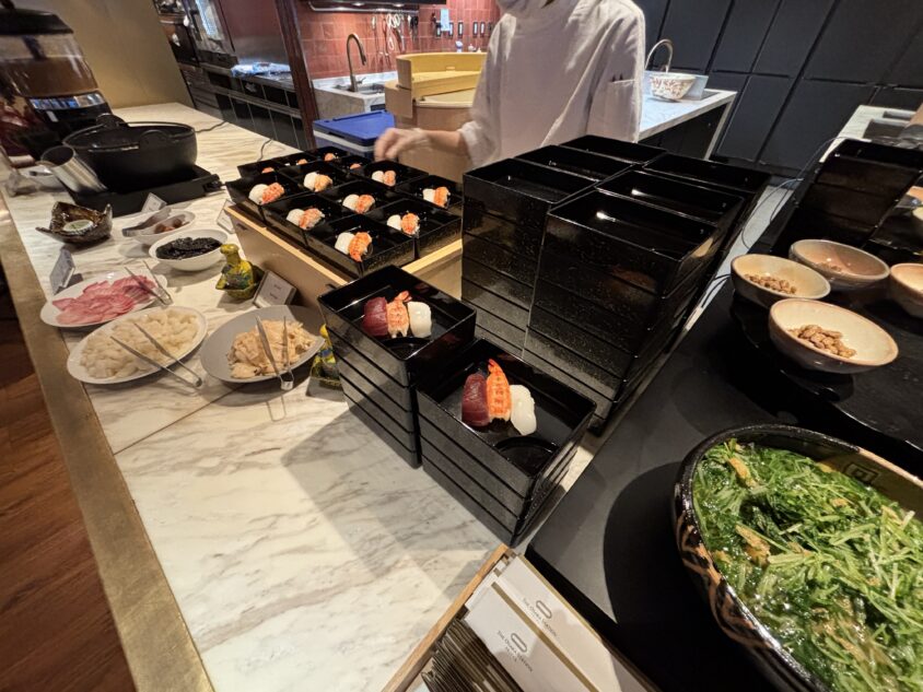 職人がその場で握る寿司、ローストビーフ、焼きたてのパンなど多すぎる品数に圧巻の一言です。